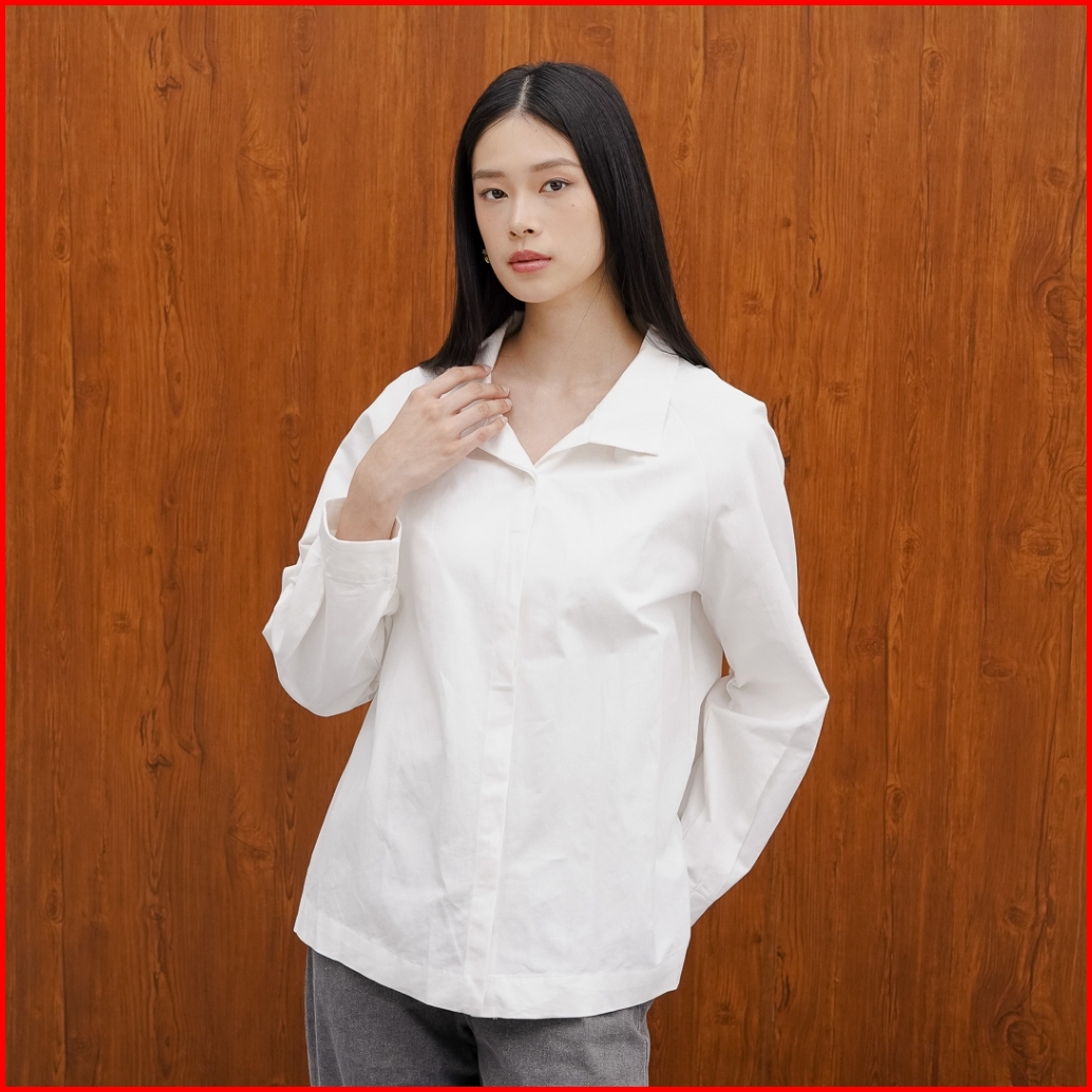 This Is April Baju Kemeja Wanita Lengan Panjang Formal Casual Look Lindy Top White 10095200