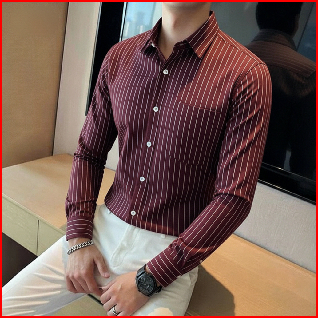 Sallamahgo - Kemeja Pria Stripe Garis-garis Bahan Wol Premium