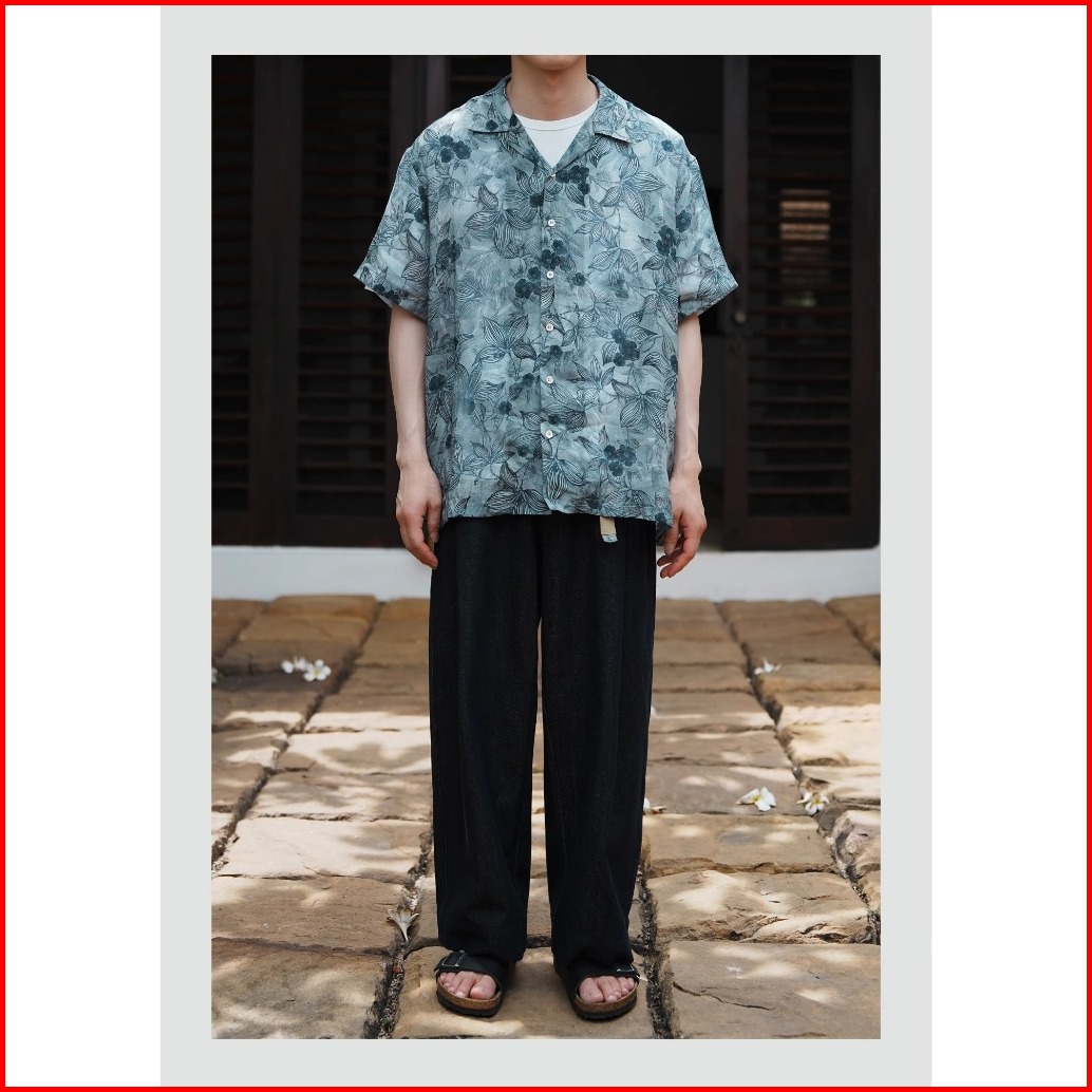Dark Icon Floral Kemeja Pria Lengan Pendek Button Down Collar Vintage Men S Shirt Male Top