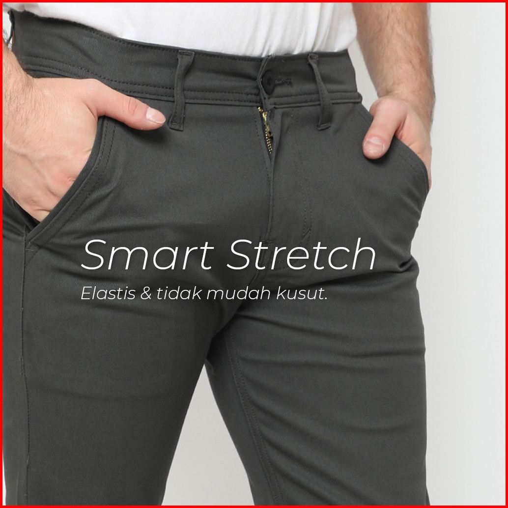 Idner - Celana Chino Panjang Pria Premium Slim Fit Stretch Dark Grey Abu Tua - Classic Chinos