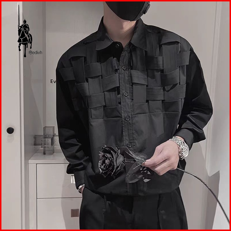 Medivh Kemeja Hitam Lengan Panjang Pria Kemeja Pria Korean Style Vintage Shirt Kemeja Santai Pria Dengan Nuansa Mewah Pu