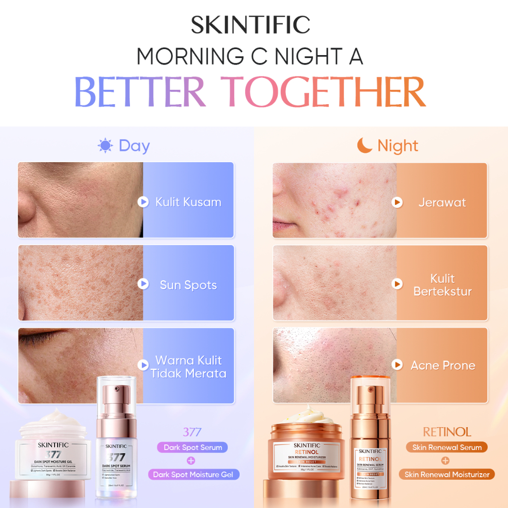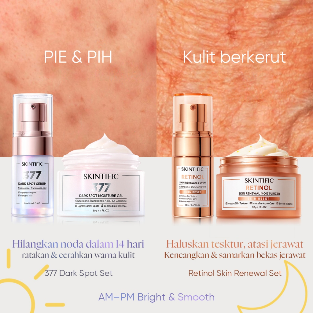 [Star] [SKINTIFIC Resmi] - 4PCS Day & Night Renew Skincare Set | 377 Dark Spot + Retinol Serum Moisturizer