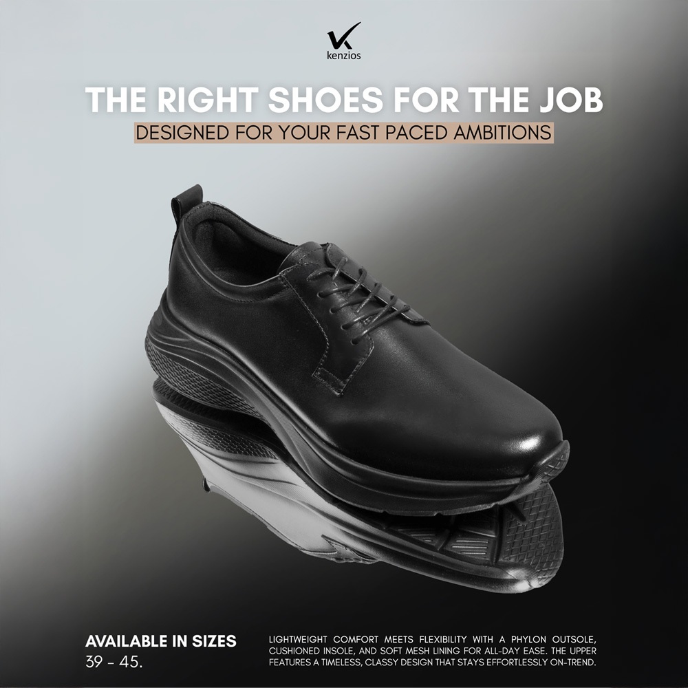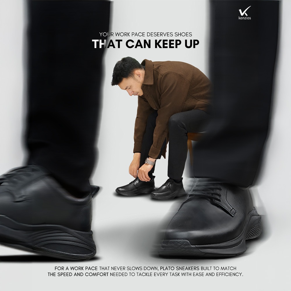 Kenzios New Plato Sneaks Full Black Series Sepatu Formal Pria Kulit Asli