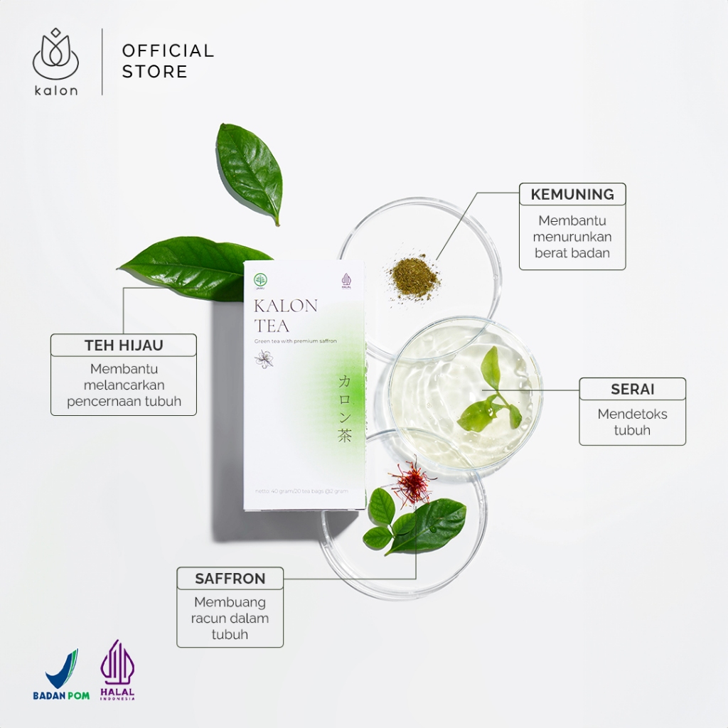Kalon Teh Hijau Premium Saffron | Teh Pelangsing Herbal | Teh Hijau | Pelangsing BPOM
