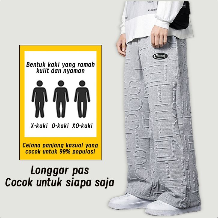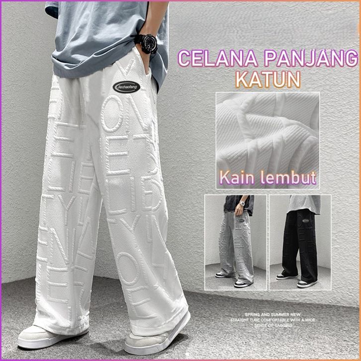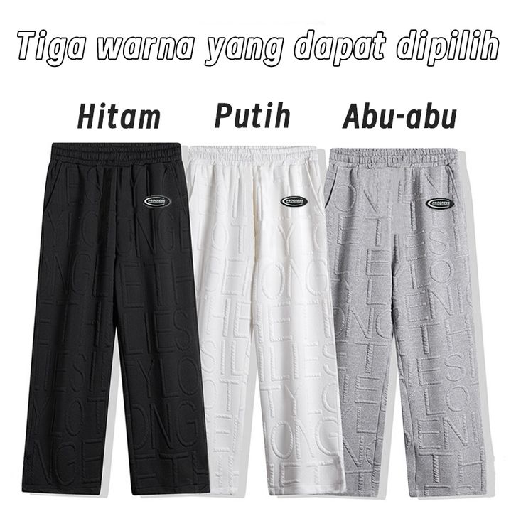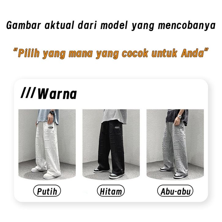 Celana Baggy Pria Celana katun putih Loose pants Celana baggy Celana panjang cowok