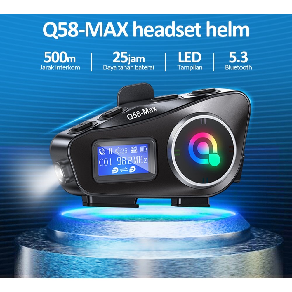 Q58Max Intercom 500M Nirkabel Intercom New Versi Bluetooth 5.3 Baterai 1000Mah Waterproof