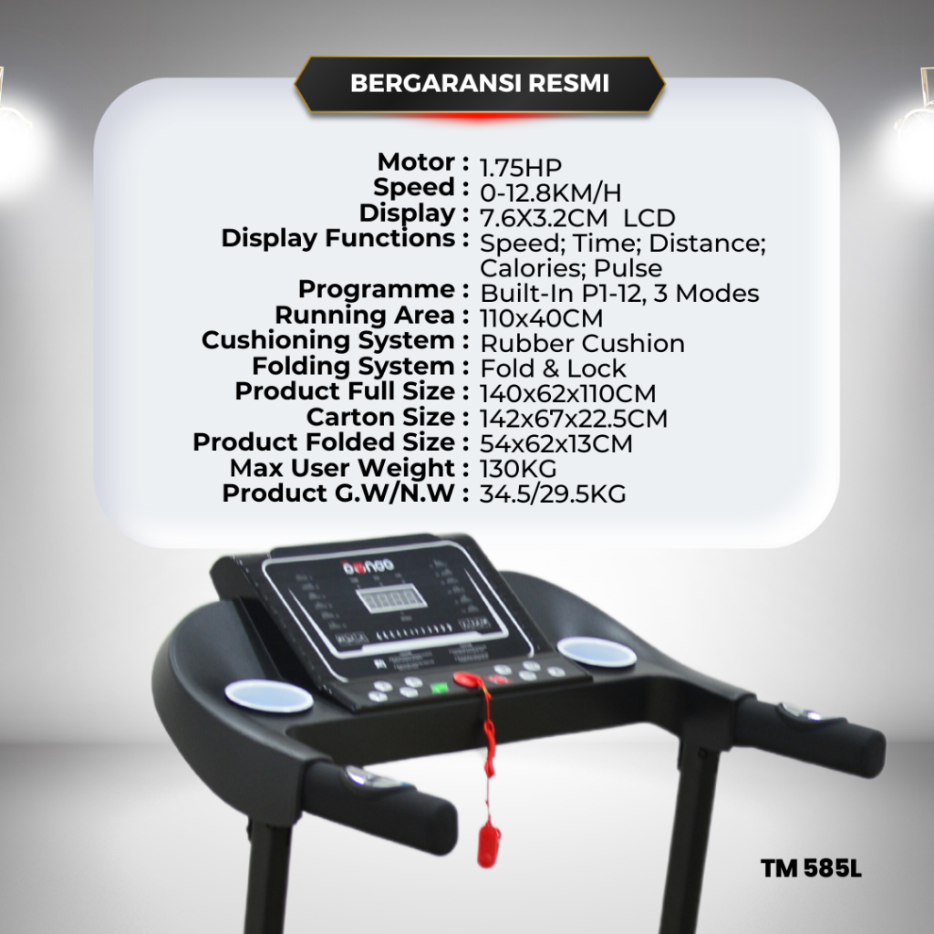 Treadmill Elektrik REDPANDA 585LM Multifungsi Listrik Lipat Portable Low Watt Fitness Gym