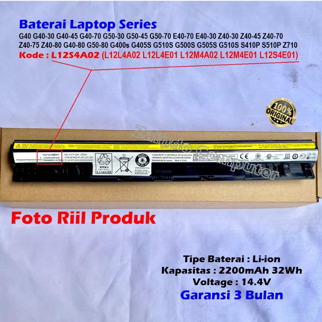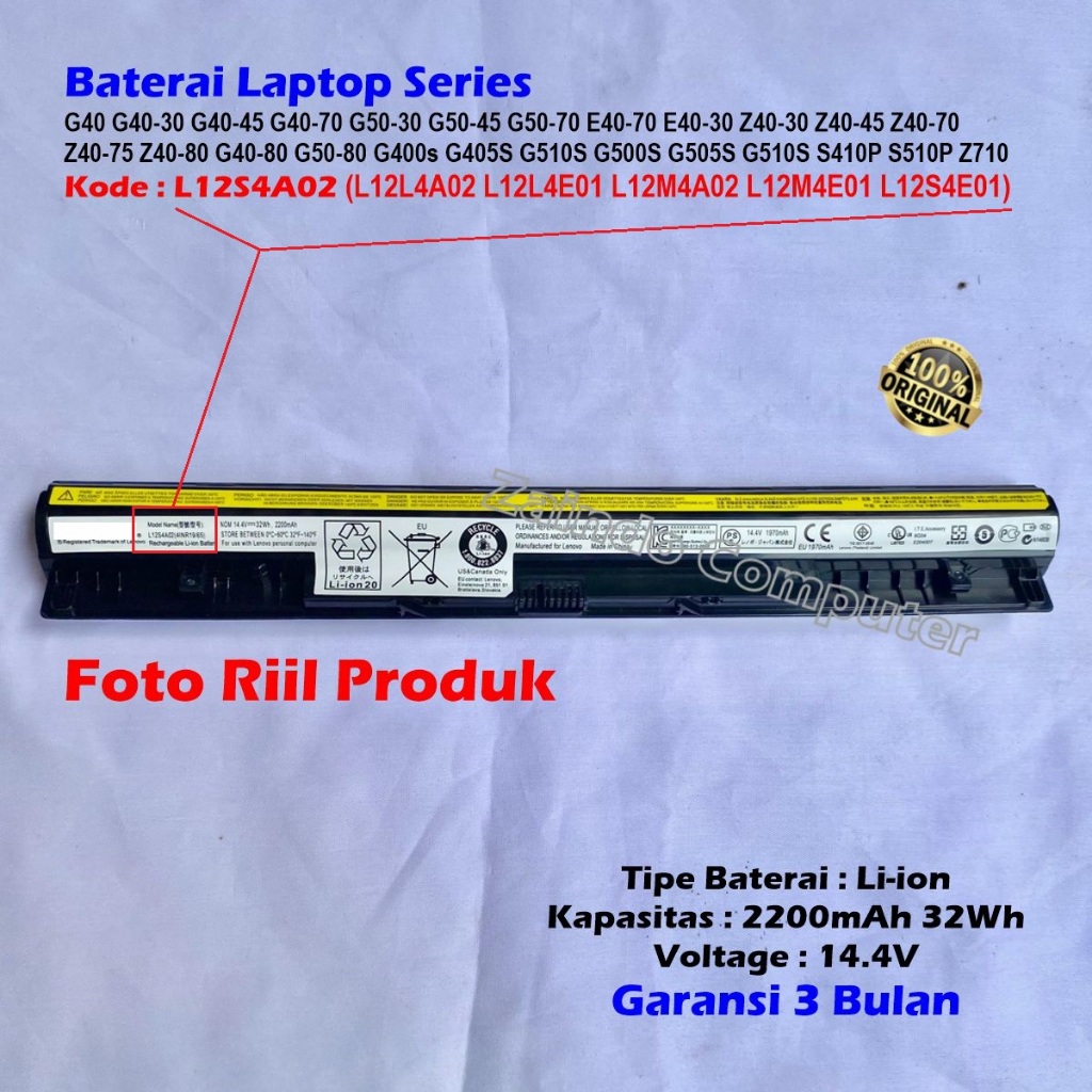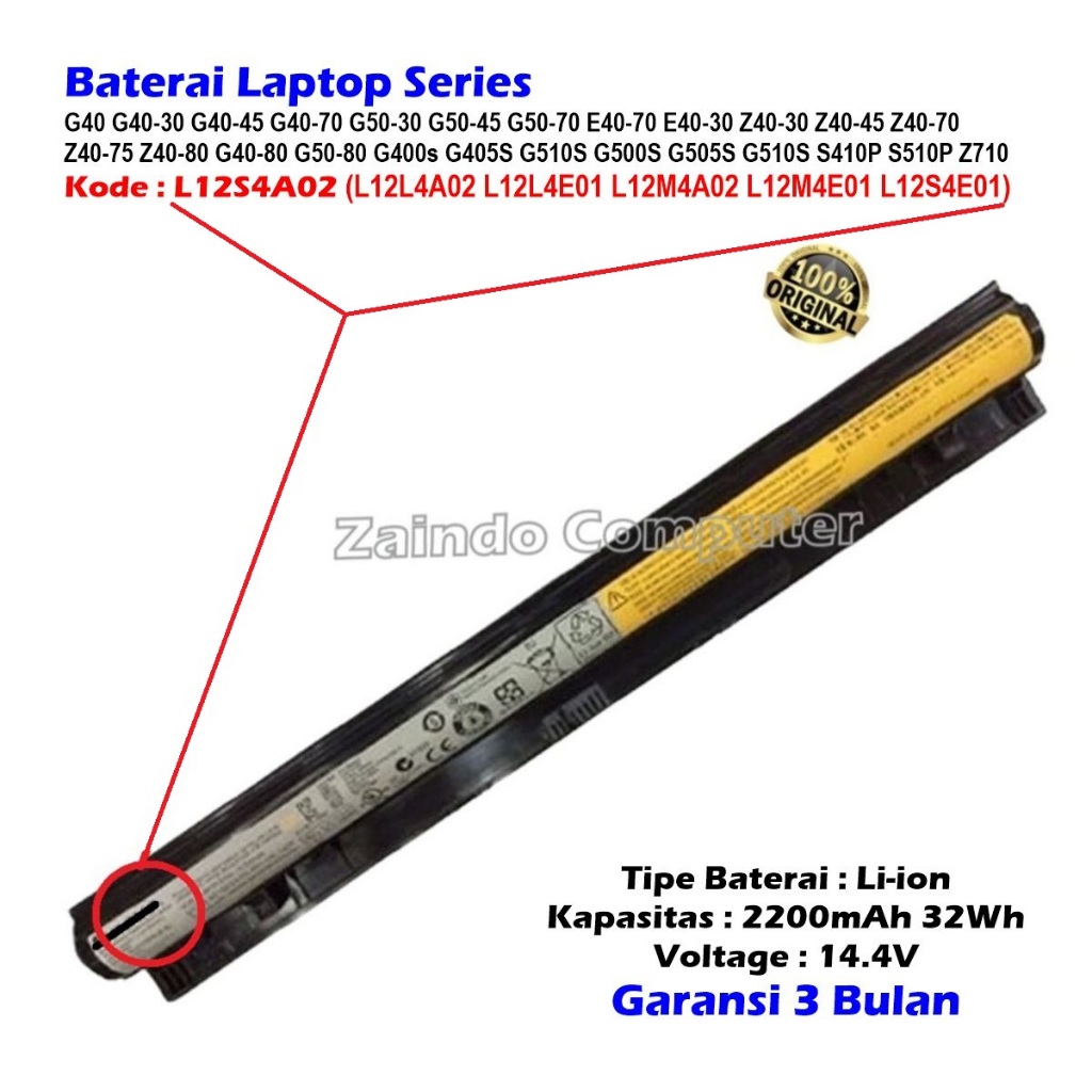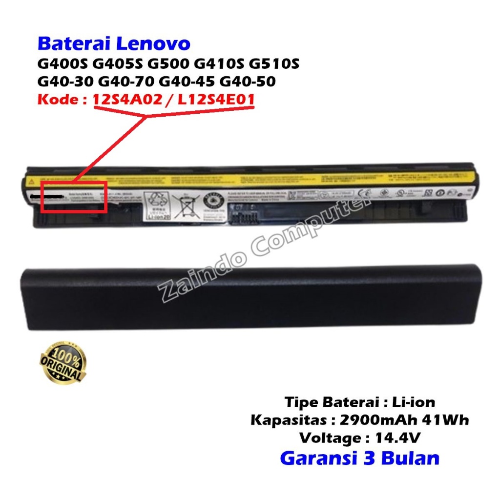 BATERAI LENOVO L12S4A02 / L12S4E01 G40 G40-30 G40-45 G40-70 G50-30 G50-45 G50-70 E40-70 E40-30 Z40-30 Z40-45 Z40-70 Z40