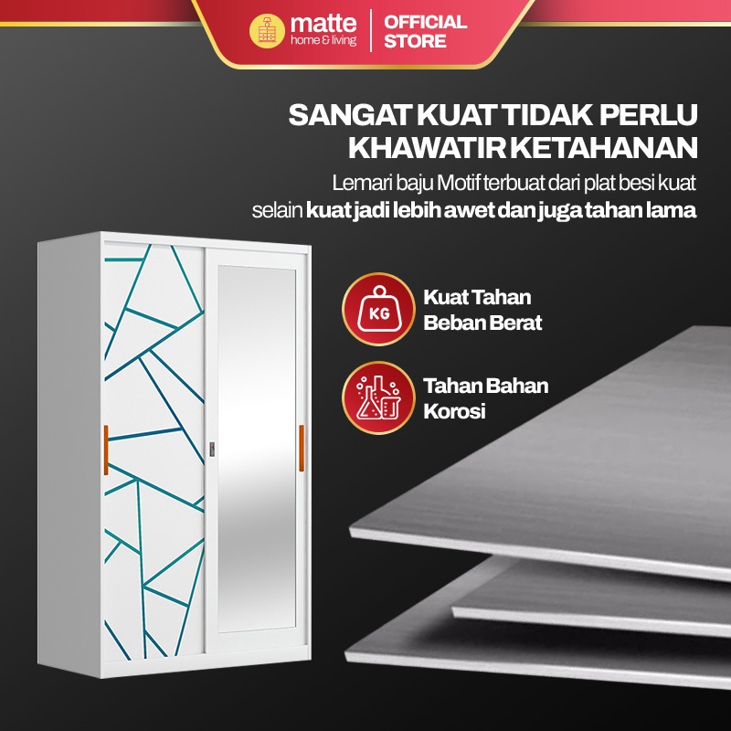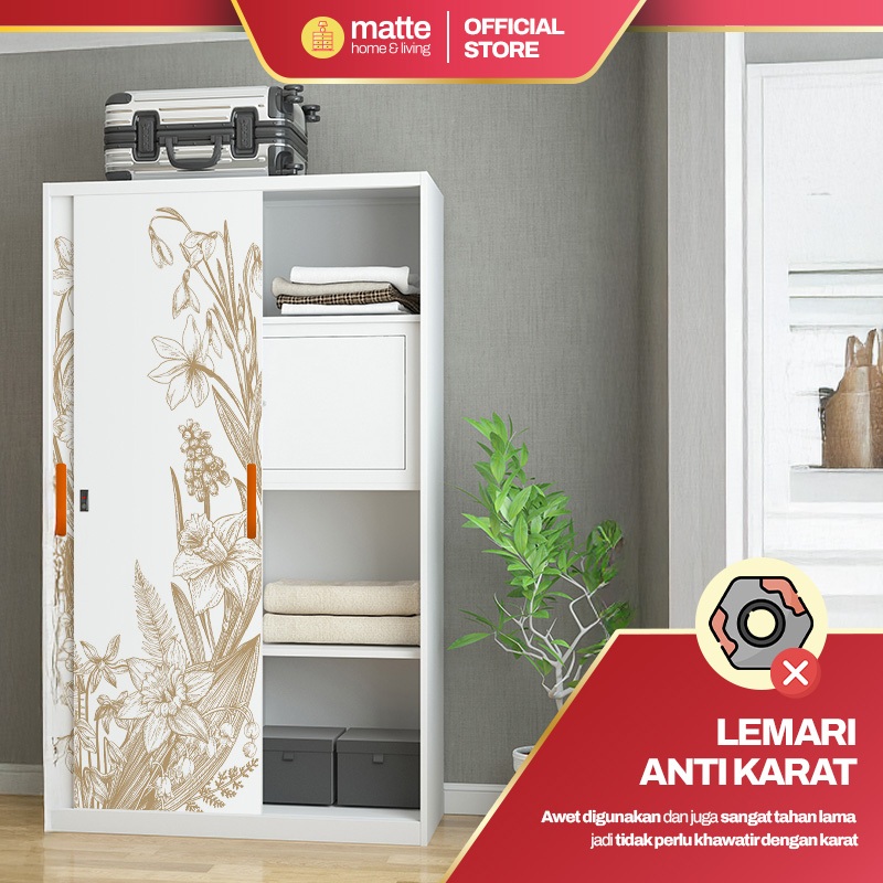Lemari Pakaian Full Besi Sliding door 2 Pintu 90cm &120cm Minimalis ModernTebal Anti Karat & Jamur Gratis Ongkir