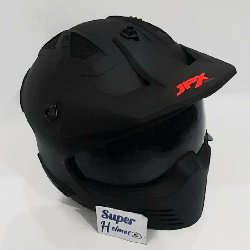 [TANPA DP] HELM JPX FULL FACE HELM JPX MX 726R POLOS SOLID SUPER BLACK DOFF/RED VISOR SMOKE MOTOCROSS ORIGINAL SNI