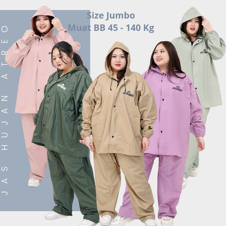 Jas Hujan Pria Wanita Jumbo Super Besar Tebal Kuat L- 4XL Seal Press by Jas Hujan ATREO Setelan