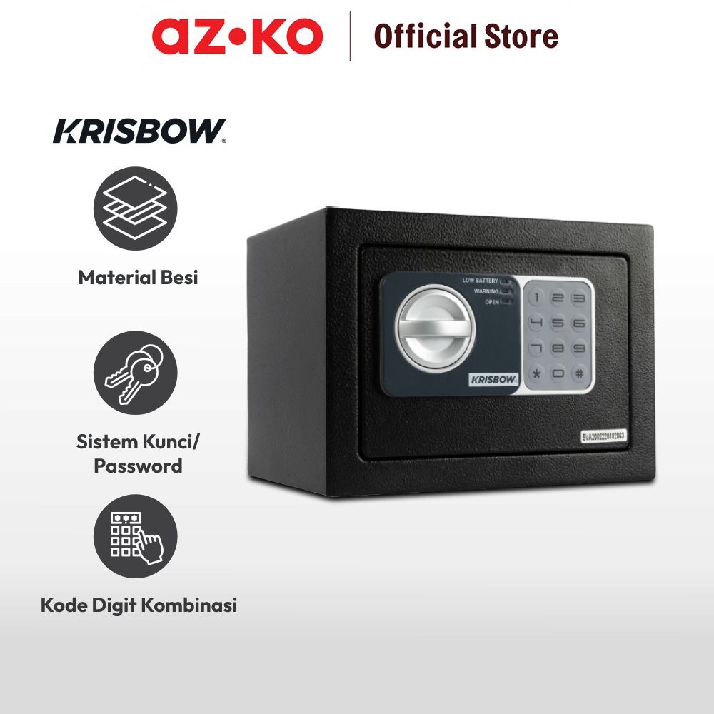 AZKO Krisbow 23x17x17 cm Brankas Besi 17nef 1/3mm - Hitam Steel Safe Perangkat Keamanan Safety Box Home Improvement