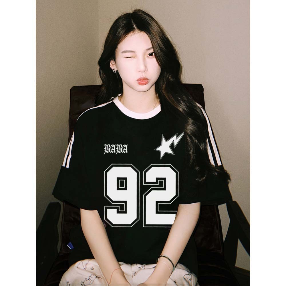 Kaos T-shirt Oversize Nomor 92 Print top| Kaos Wanita Putih | Kaos pria dan wanita | Street Style