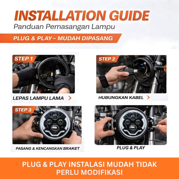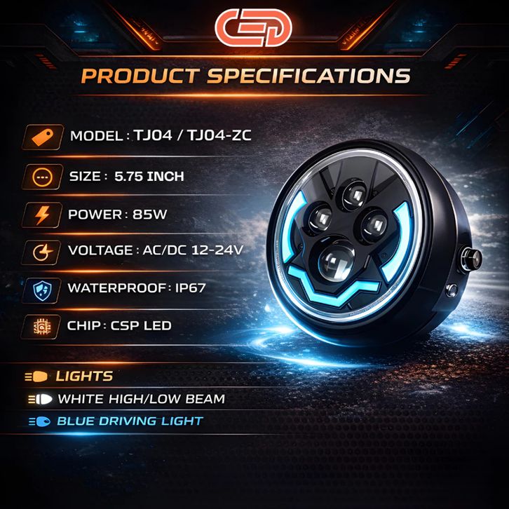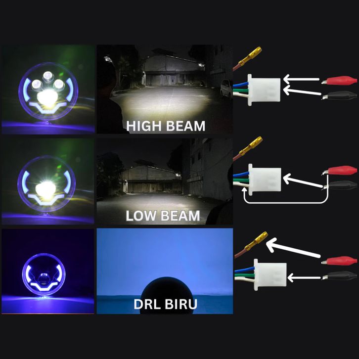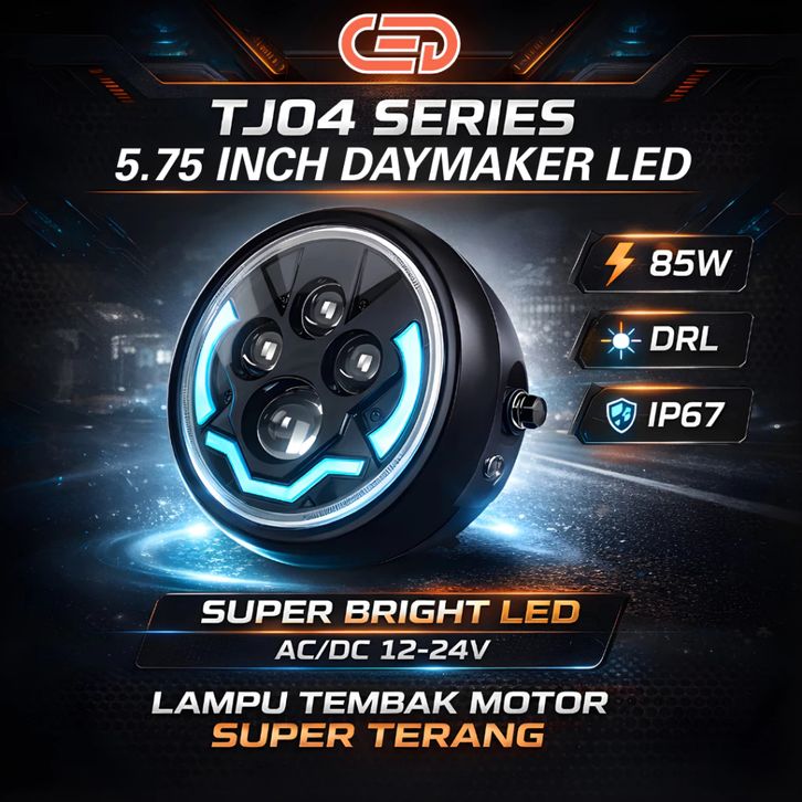 Lampu Tembak Daymaker 3 Inch XTZ LED DRL 85W Super Terang 3 Projector + 1 LED Utama IP67 Lampu Sorot Motor Universal