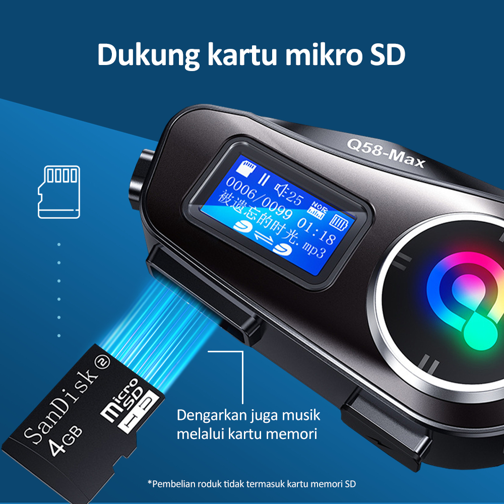 Q58Max Intercom Helm Intercom New Versi Bluetooth 5.3 Baterai 1000Mah Waterproof