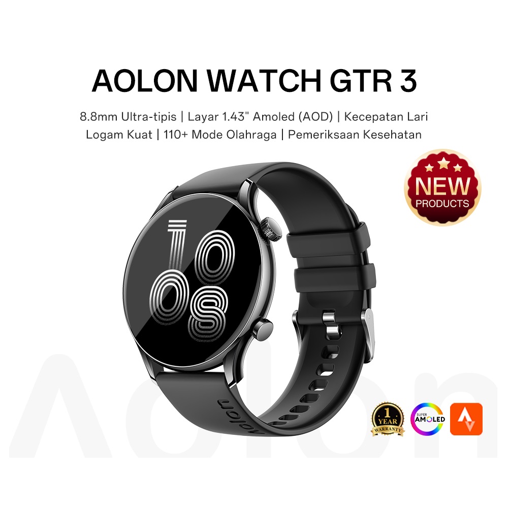 Aolon GTR 3 Jam Tangan Smartwatch Tipis Original 46mm Amoled AOD Ultra-thin Kecepatan Berlari Detak Jantung Tidur Whatsa