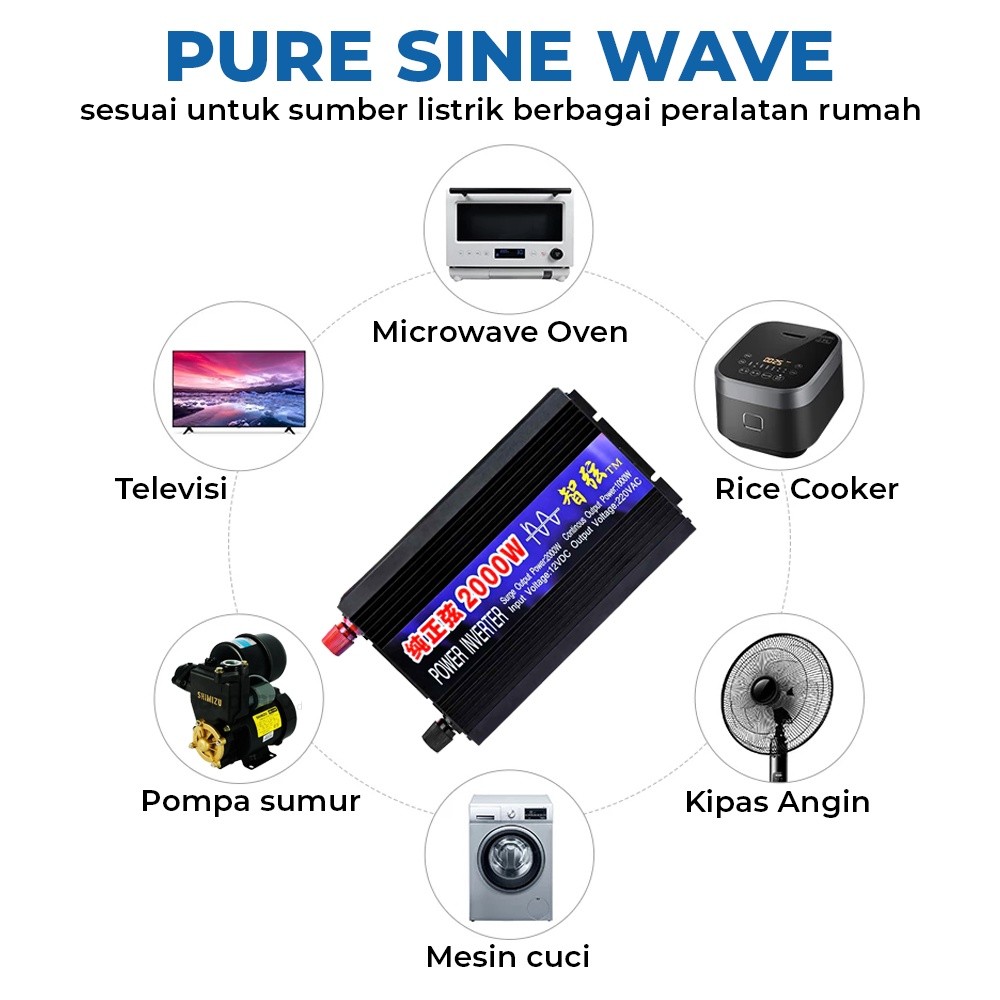 Pure Sine Wave 2000W SUNYIMA Power Inverter Mobil 12V 24V DC ke AC