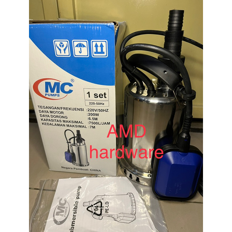 MC PUMP SMC-Q550B52R POMPA CELUP STAINLESS SUBMERSIBLE 275W 200W AUTO / MANUAL BISA AIR BERSIH & KOTOR WSD 8-8-0.37 Heav