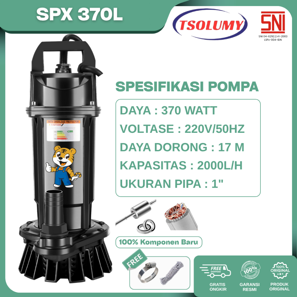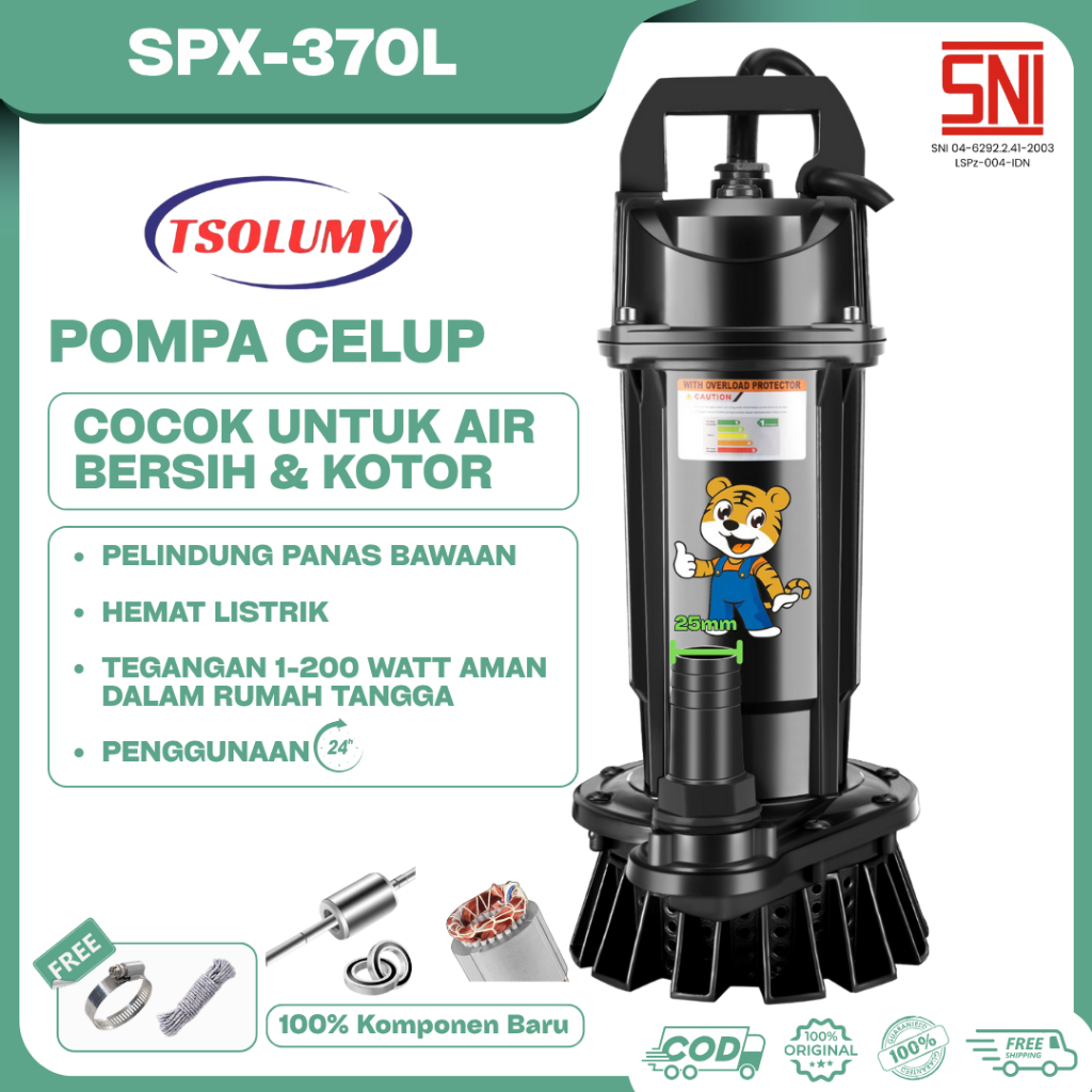 Tsolumy Pompa Celup Air Bersih Keruh SPX-370L/S Pompa 370W Outlet 25mm Pompa Kolam Taman Car Wash