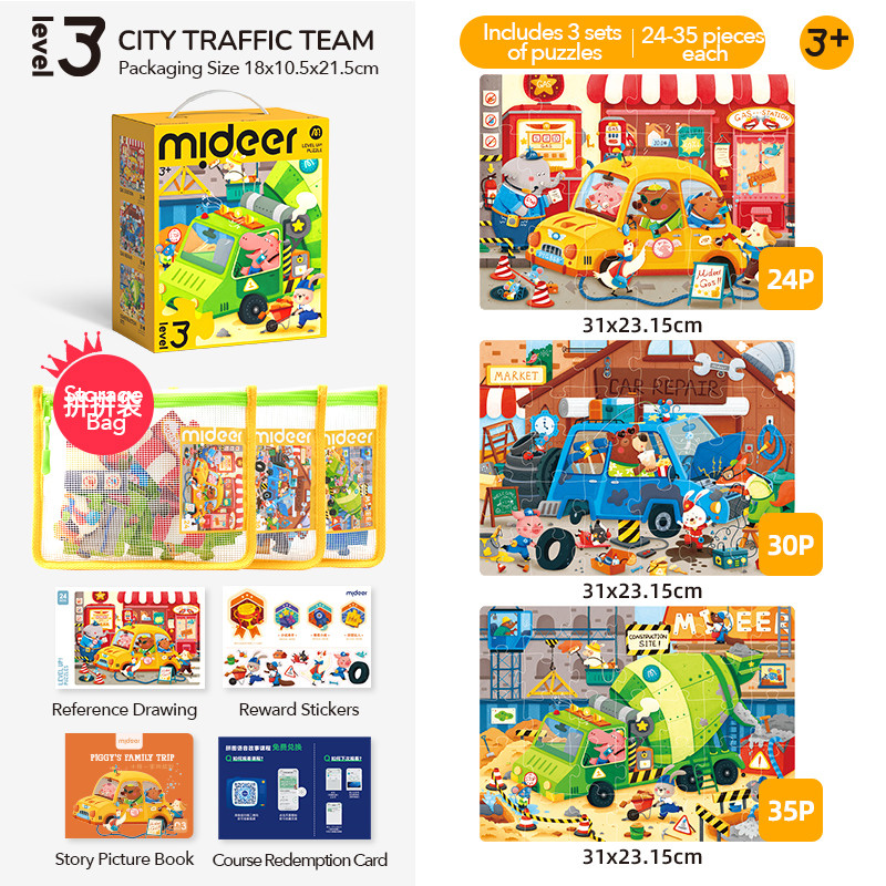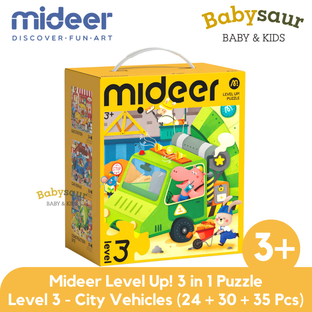 Mideer Level Up! 3 in 1 Puzzle Level 3 City Vehicles New Packaging Mainan Edukasi Puzzle Anak Laki Laki Perempuan 2 3 4