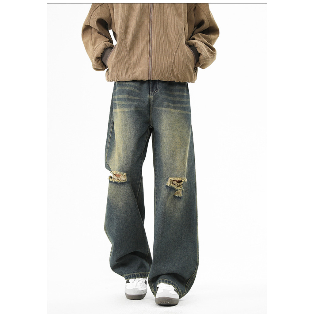 celana jeans pria American Style Robek & Wide Leg - KEREN Tren Terbaru 2025