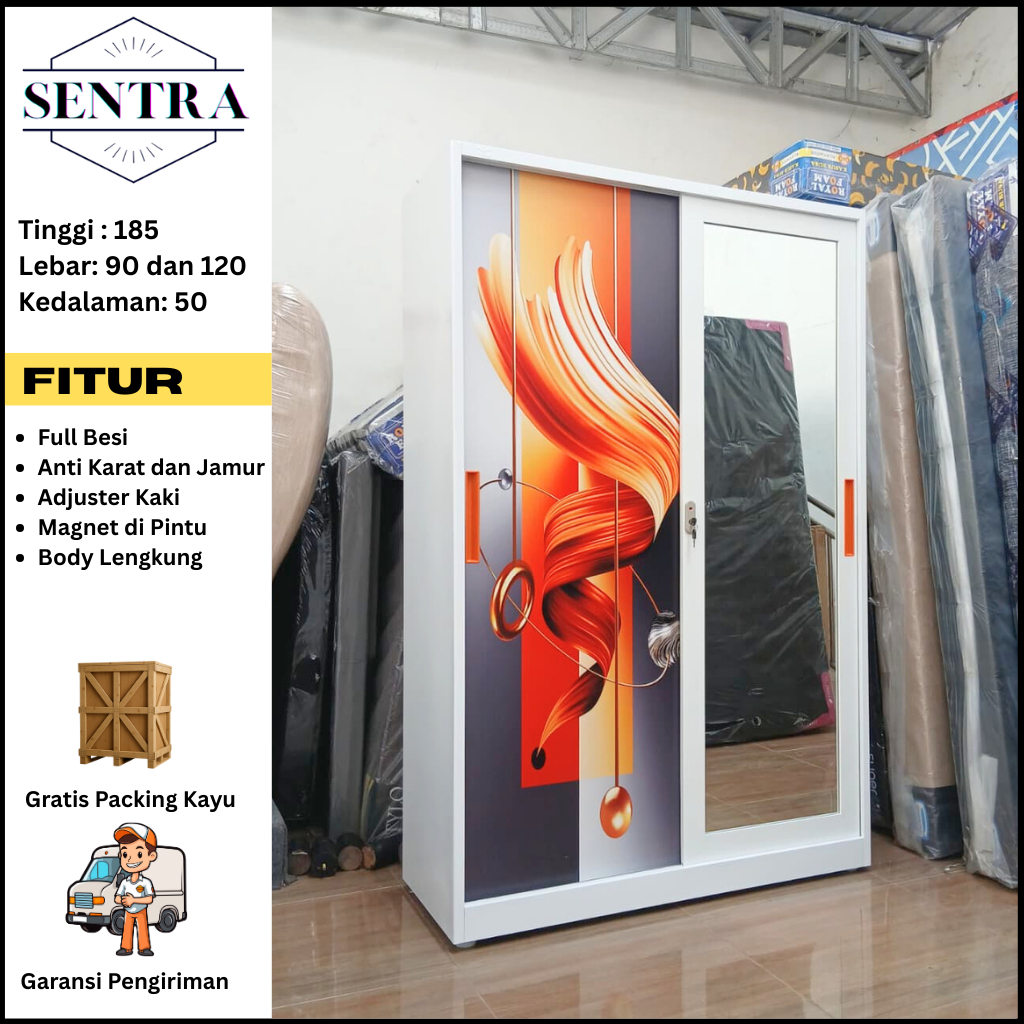 Lemari Pakaian 2 Pintu Besi Sliding Cermin | Lemari Baju Sleding Besi Gratis ngkir