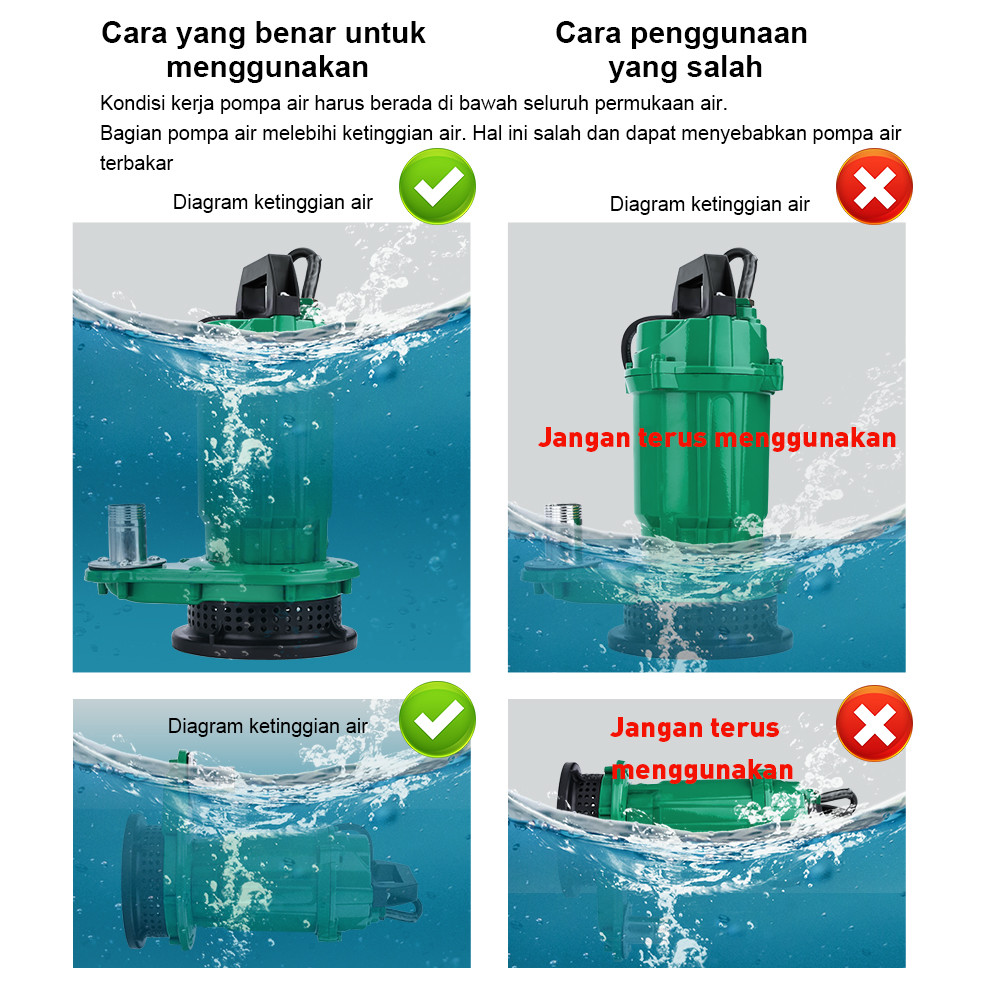Pompa Celup Air Kotor 1000w Submersible Pump 220V Pompa Jet Jenis Pemotongan Blowdown (100% Tembaga)