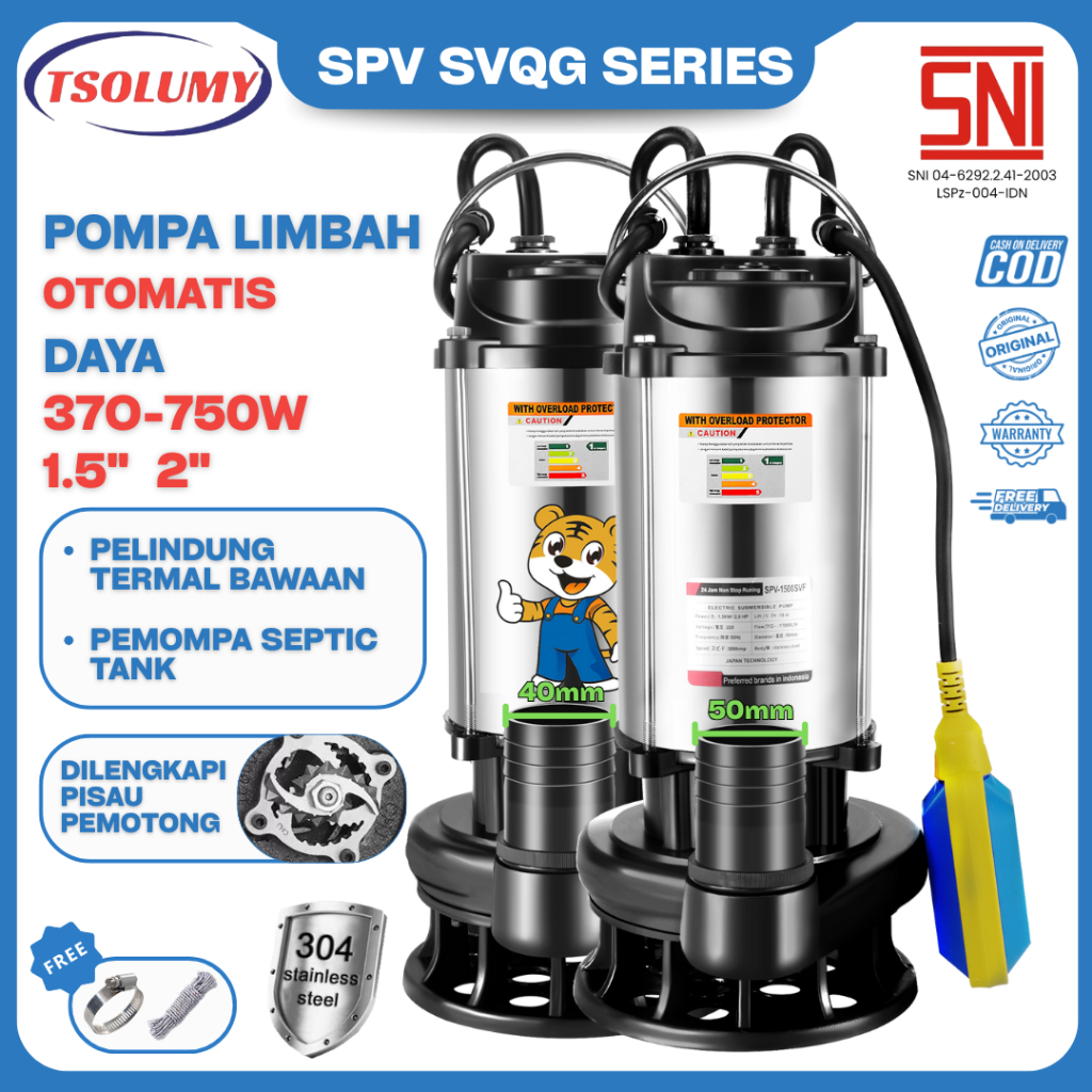 Tsolumy Pompa Air Celup Air Kotor Sewage Cutter SPV-370-750SVQG/(F) 38/50mm Pompa Pemotong Limbah