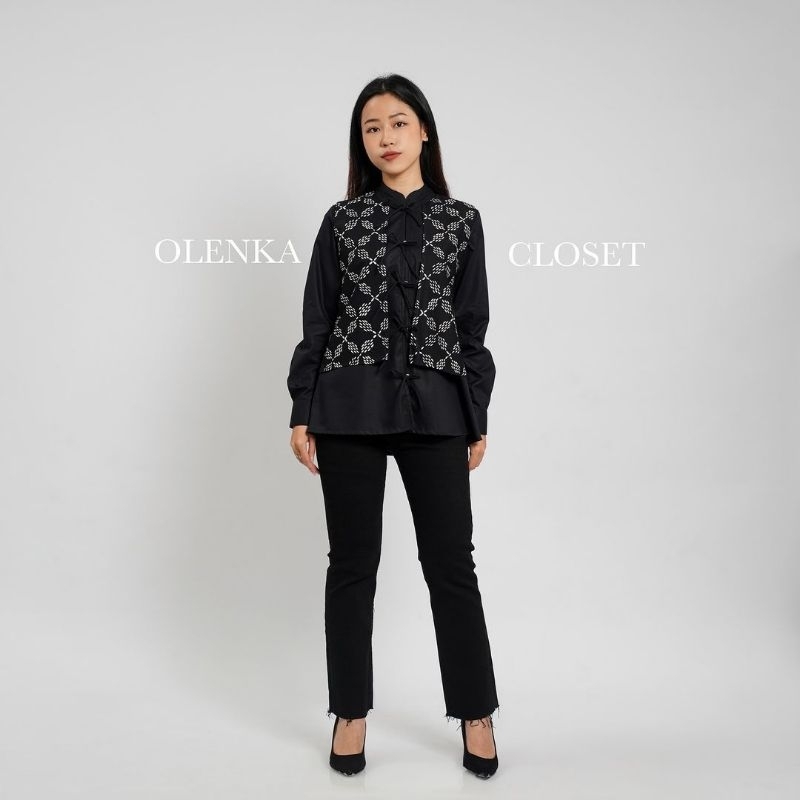 Atasan Batik 174 Hitam Baju Blus Blouse Kerja Wanita Modern