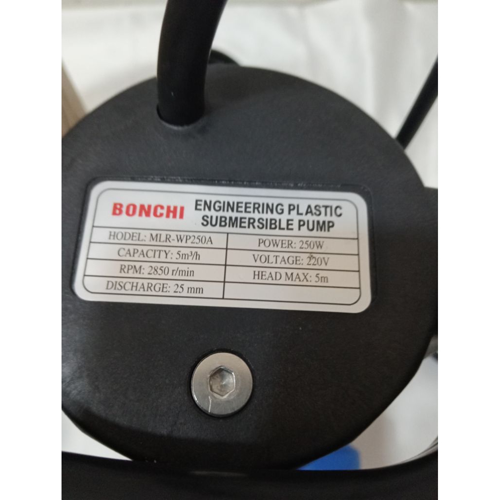 250W SUBMERSIBLE OTOMATIS UNTUK BANJIR,KOLAM IKAN ,TOREN TYPE WP 250A MERK BONCH IMODEL M