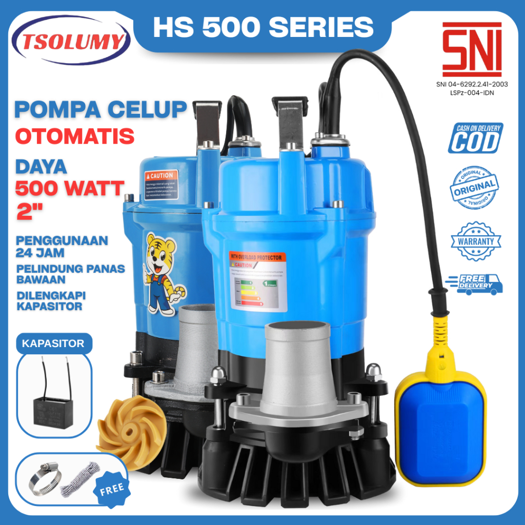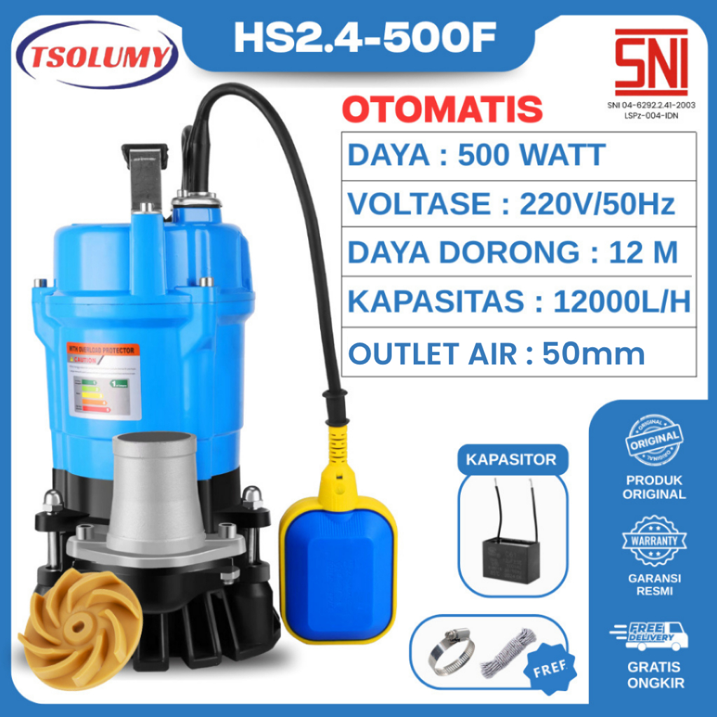 Tsolumy Pompa Celup Air Kotor Bersih HS2.4-500/F Outlet 50mm Pompa Kolam lkan Pompa Air Car Wash