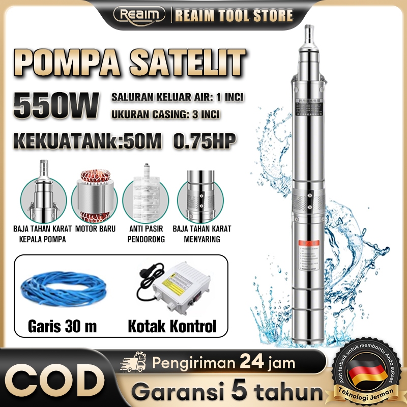 Reaim 550W Pompa Satelit 0.75HP Pompa Air Sumur Dalam Stainless Steel Submersible Pump Pompa Air Satelit