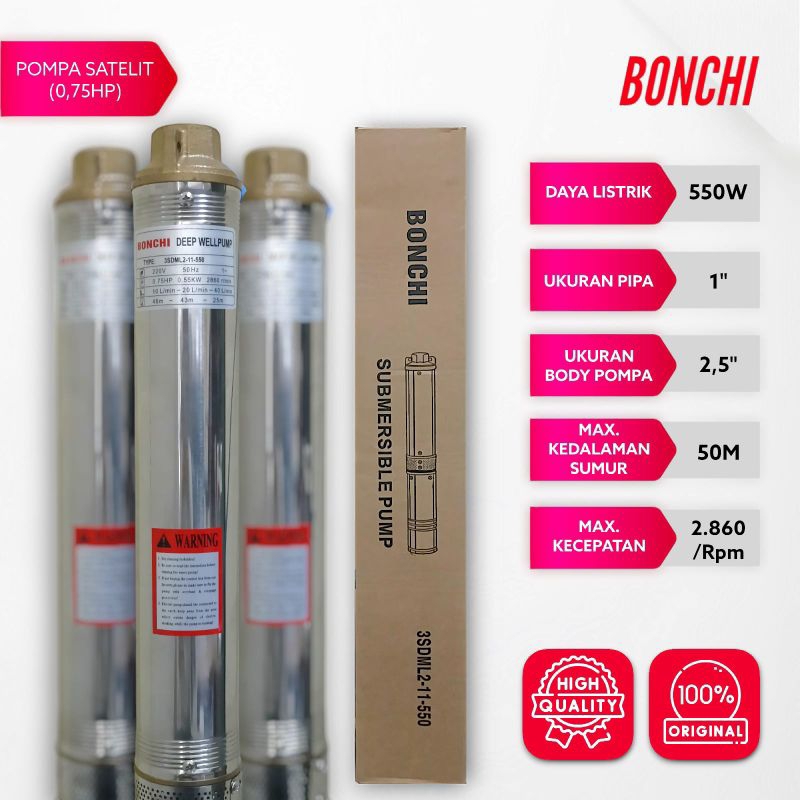 Pompa Satelit Pompa Submersibel 1 Inch 0,75 HP BONCHI + Bonus Kabel 30 Meter, Pump Submersibel Sateli