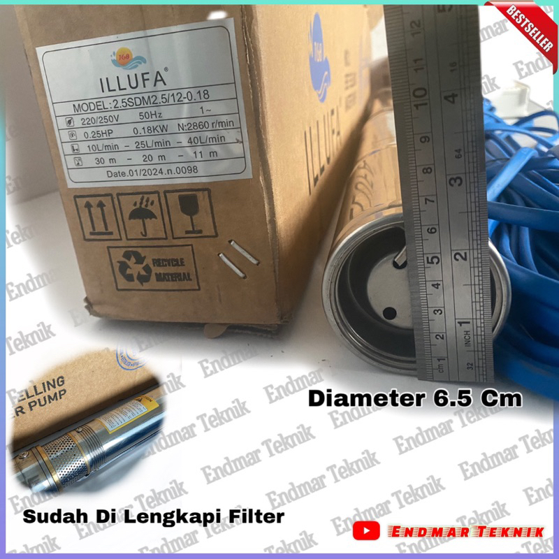 ILLUFA Submersible Pump 2.5 inch 1/4PK 0.25HP 180 watt Kabel ±30 Meter Sudah Tersambung dari pabrik langsung Pompa Celu
