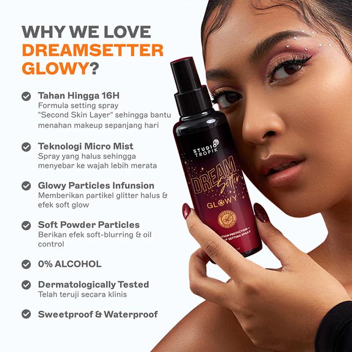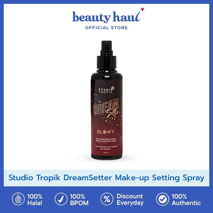 STUDIO TROPIK DREAMSETTER: GLOWY POLLUTION PROTECTION MAKE-UP SETTING SPRAY 130 ML - FACE MIST SETTING SPRAY GLOWING FINISH, MAKEUP SPRAY TAHAN LAMA