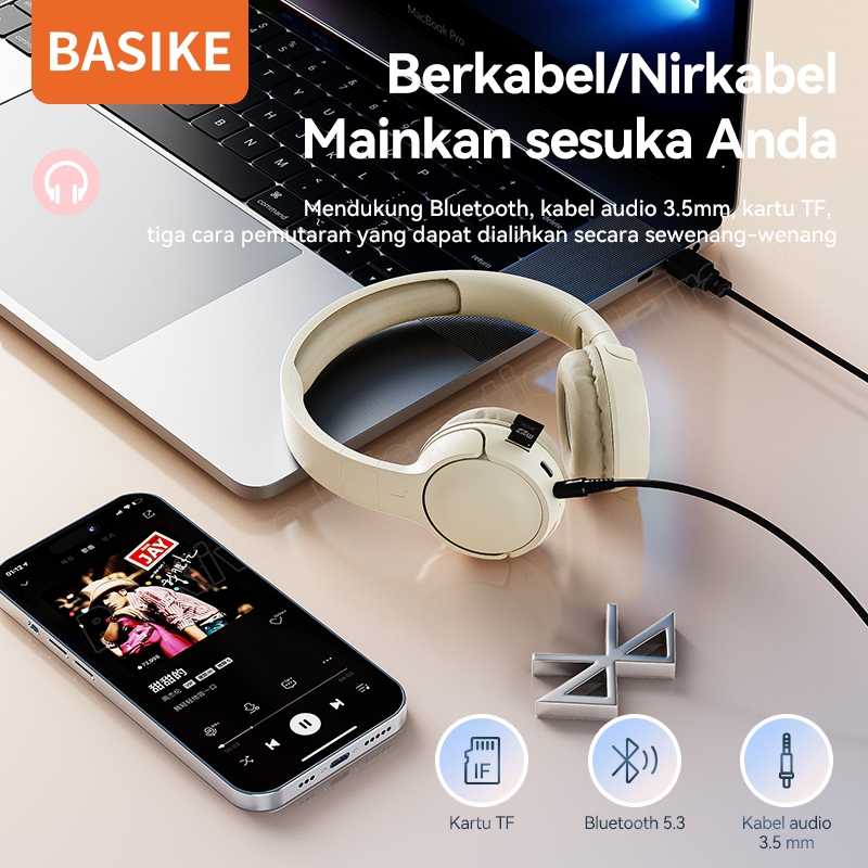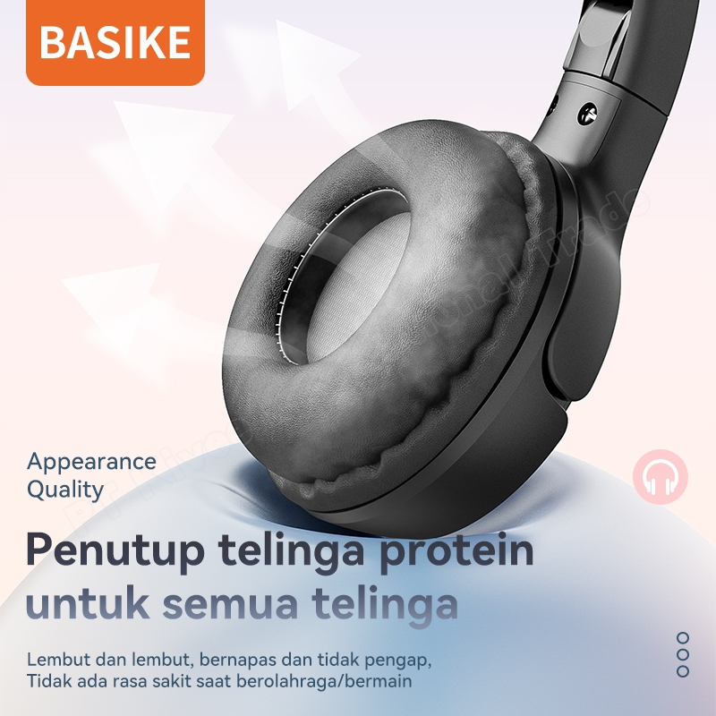 BASIKE Headphone Wireless Bluetooth Headset Gaming 9D HIFI Music Stereo Bass Makaron Original