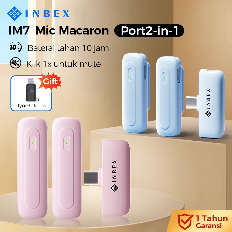 INBEX IM7 1 TO 2Wireless Lavalier Microphone 2-IN-1 Macaron 360° Omnidirectional & DSP Chip & One-Touch Mute
