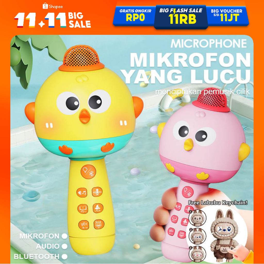 Habibi Mainan Mikrofon Anak Mikrofon Bluetooth Wireless dengan Fitur Speaker Nyanyi untuk Bayi&Anak