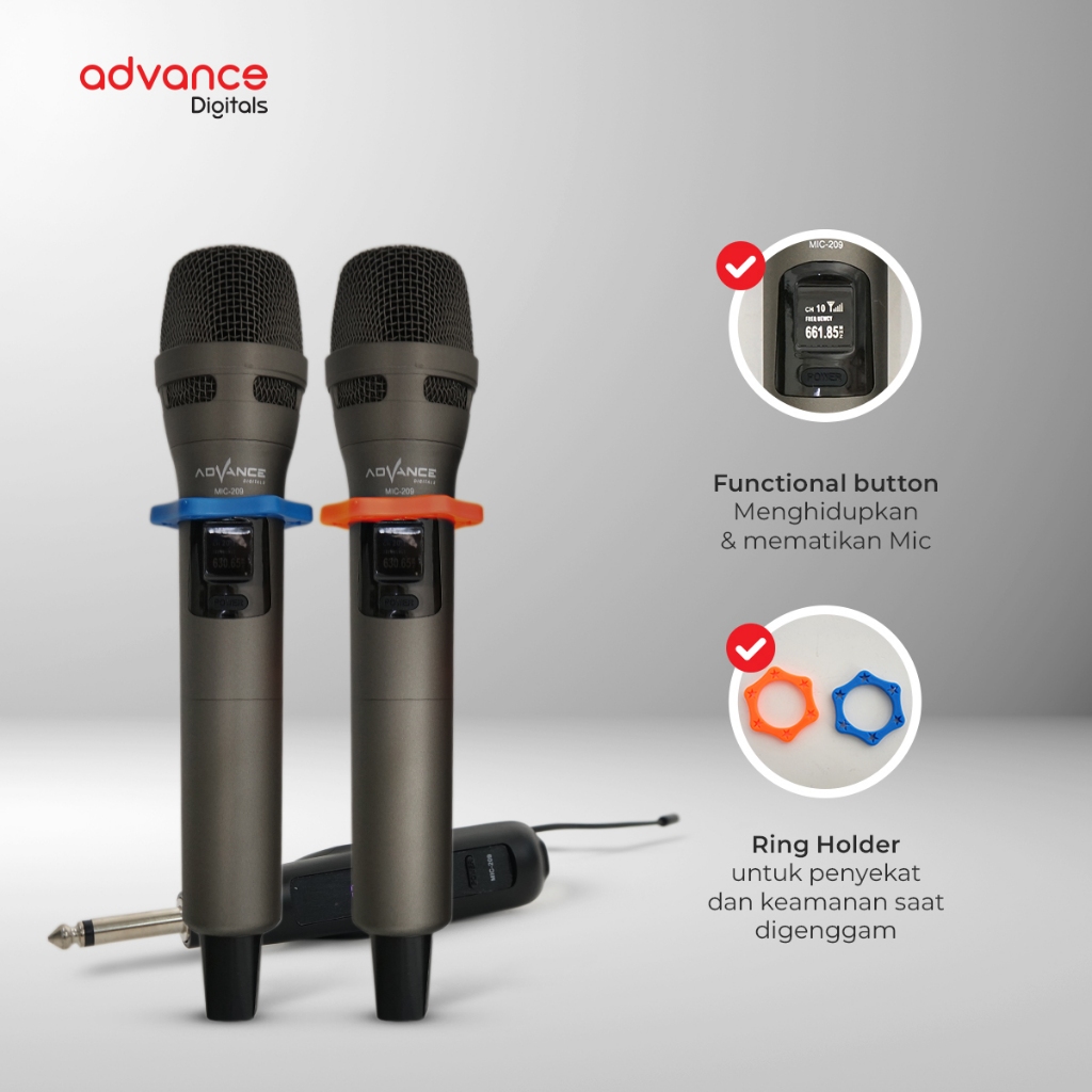 Advance MIC-209 Professional Dual Microphone Wireless Jack 6,5mm Jangkauan 20-30m Garansi 1 Tahun