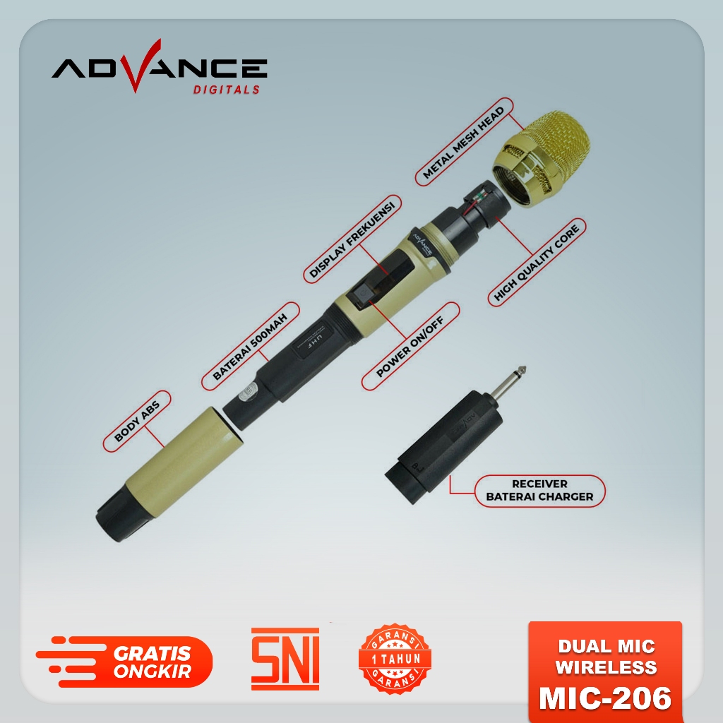 Advance MIC-206 Double Microphone Wireless UHF Recharger Bisa untuk Souncard/Speaker Garansi 1 Tahun