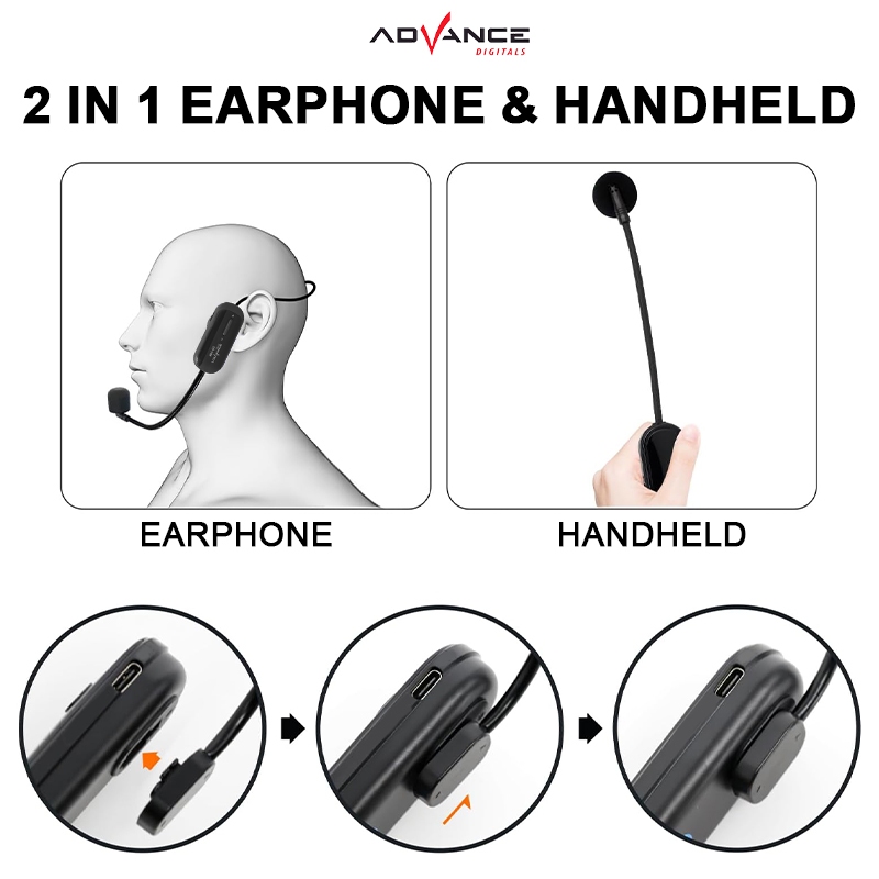 Advance Wireless Microphone Headset MIC-D2 Mic Bando Mic Clip On Mikropon Voice Call Center Garansi Resmi 1 Tahun