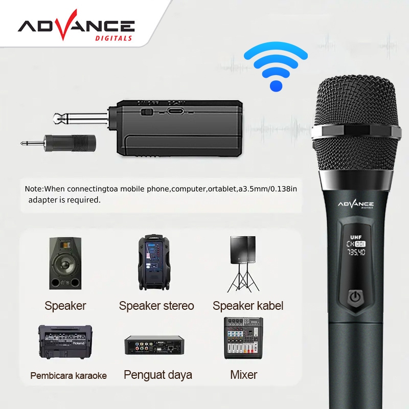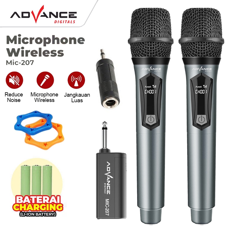 Advance Double Mic Karaoke Wireless Microphone Suara Jernih BONUS Baterai Cas 3 Pcs