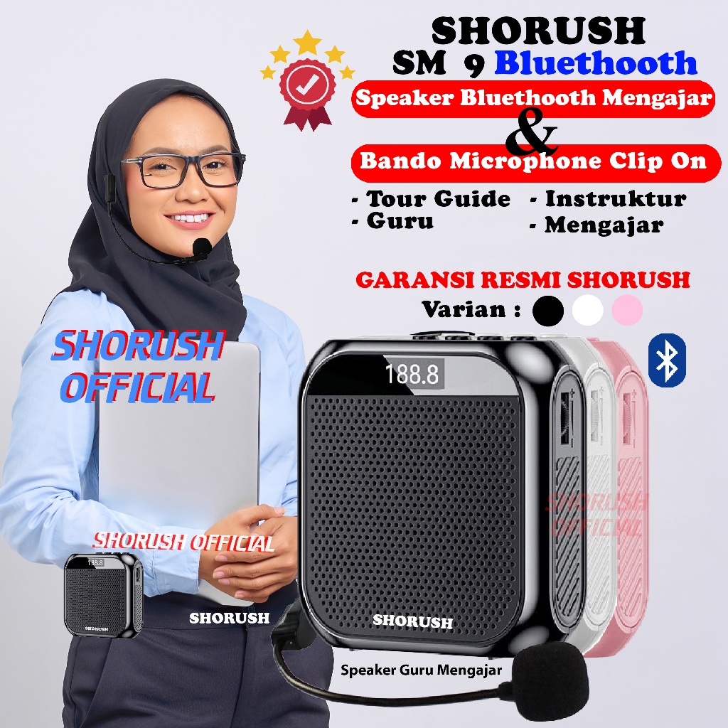 Shorush SM-9 Speaker Pinggang Portable Mini Bluethooth Dengan Microphone Mic Clip on Bando Pengeras Suara Untuk Guru Dosen Mengajar Instruktur TourGuide Presentasi Kegiatan Outdoor Seminar