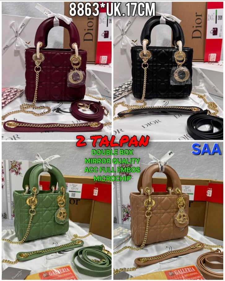 TAS DIOR LADY CHAIN KULIT ASLI MIRROR VVIP/TAS WANITA LEDY MINI 17CM/HANDBAG/SHOULDERBAG TAS BRANDED TERBARU
