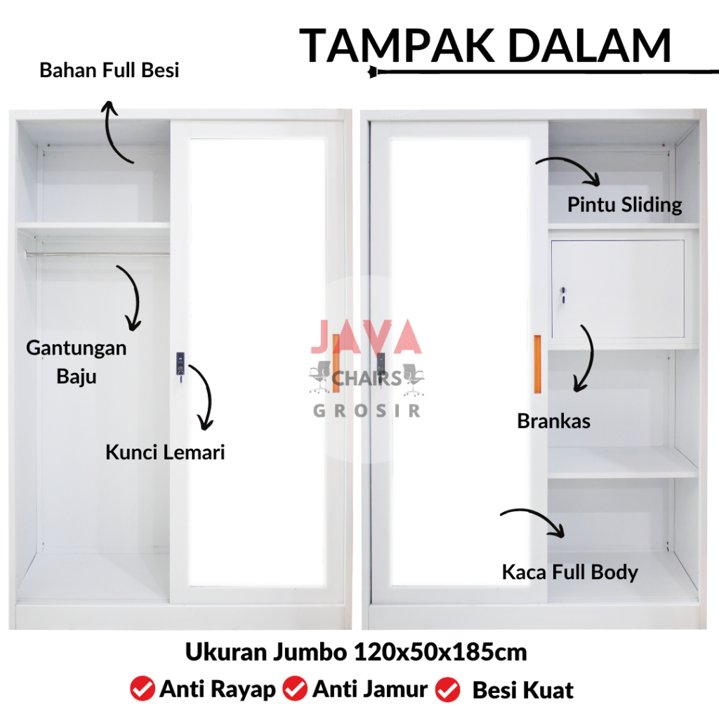 Lemari Pakaian Full Plat Besi 2 Pintu Sliding 120cm – Awet, Kuat, Anti Jamur Gratis Ongkir
