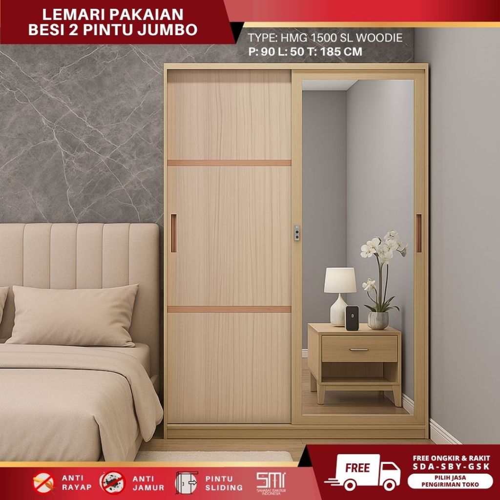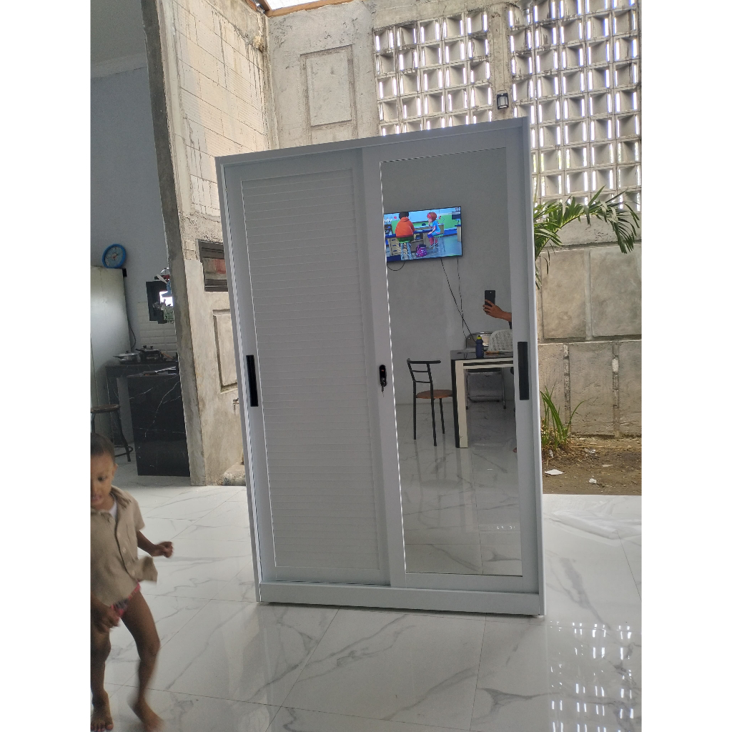 Lemari Pakaian Full Plat Besi 2 Pintu Sliding 120cm – Awet, Kuat, Anti Jamur Gratis Ongkir