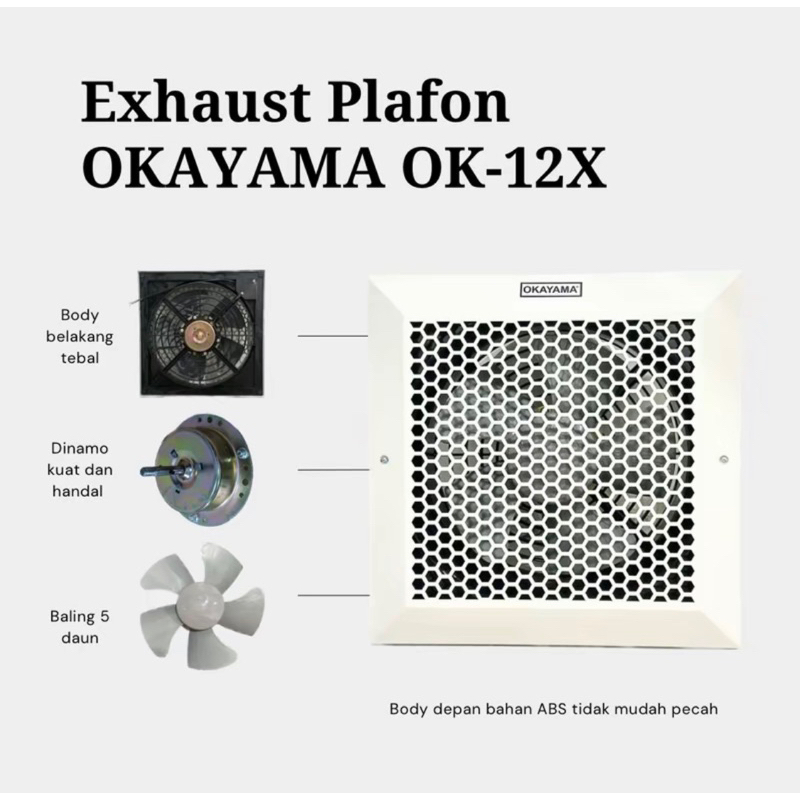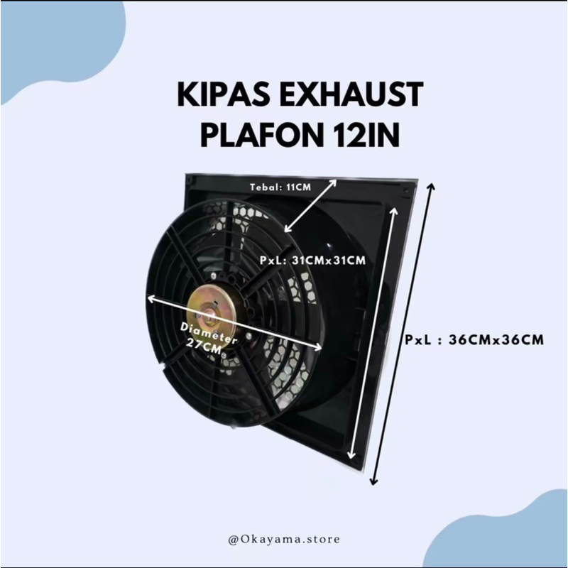 OKAYAMA Exhaust Fan 12 inch / Hexos Fan / Kipas Angin Penyedot Udara TYPE:OK-12X Penyedot debu / Hexos plafon / Hexos Da