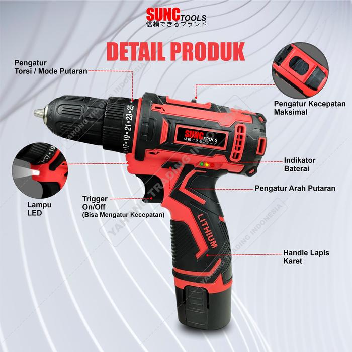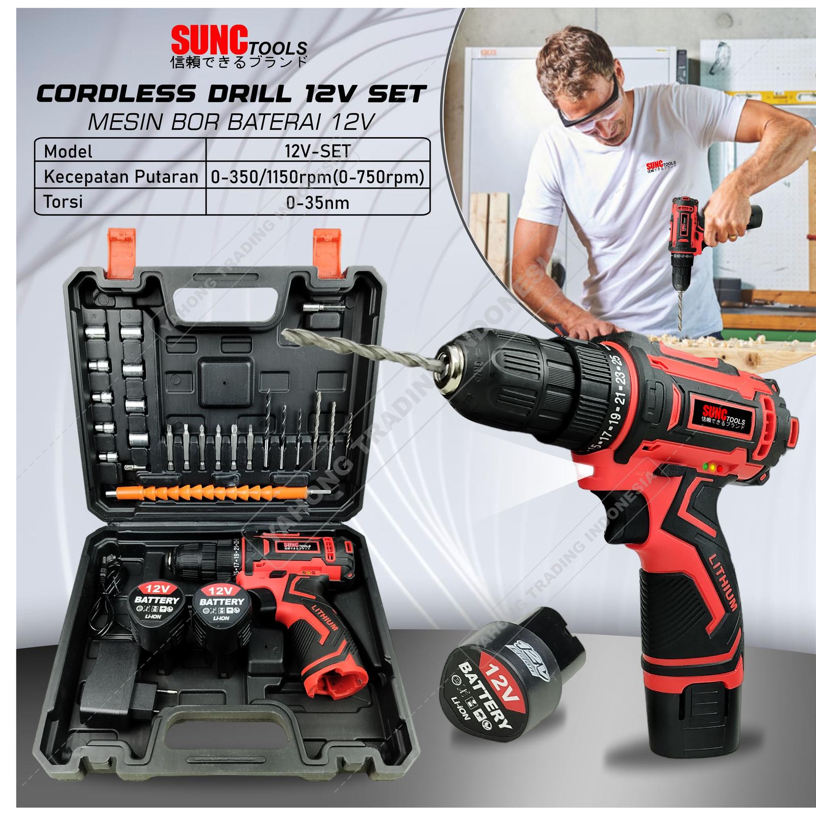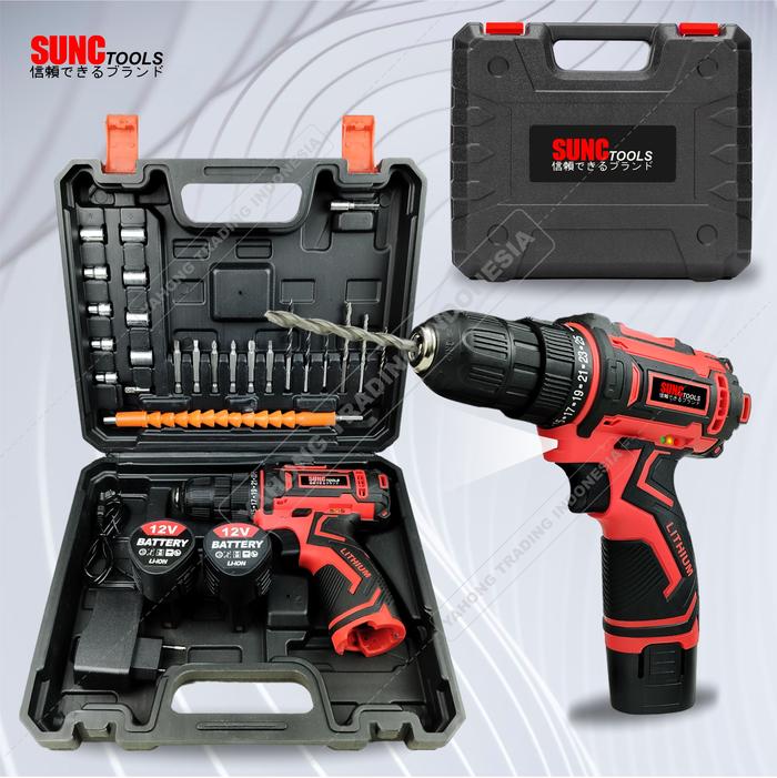 Cordless Drill Set 29pcs 12V Mesin Bor Obeng Kunci Pas