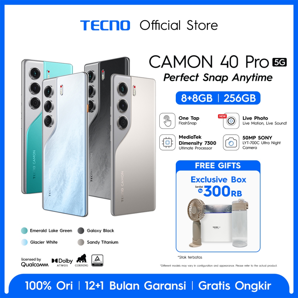 [Mall] Hp Tecno Camon 40 Pro 5G 8+8GB 256GB Mediatek D7300 Ultimate Hp Gaming 3D Curved Amoled Garansi Resmi Tecno