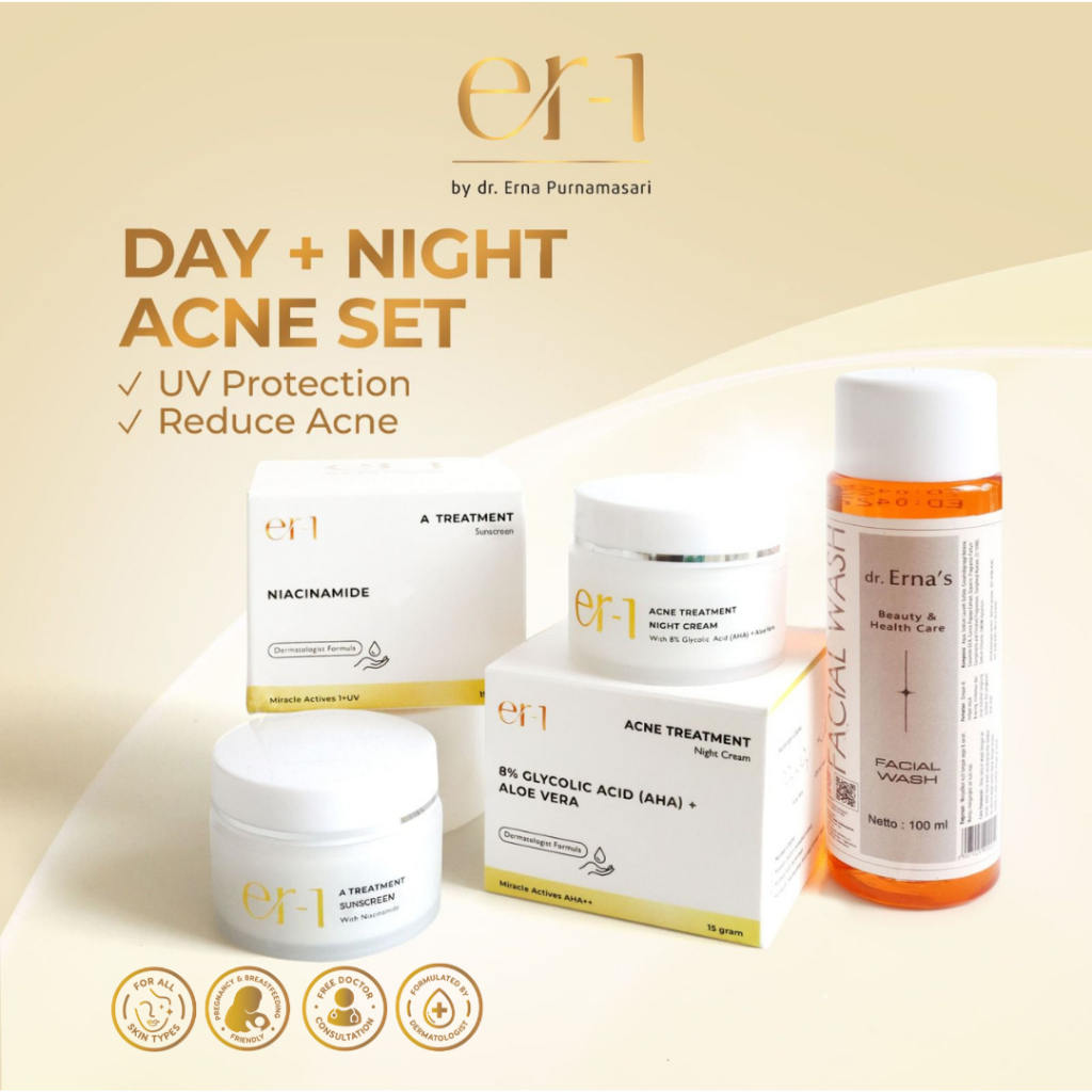 er-1 by dr. Erna Day & Night Cleanser Anti Acne Set 3 Pcs - Paket Skincare Jerawat - Night Cream Day Cream Sunscreen Fac